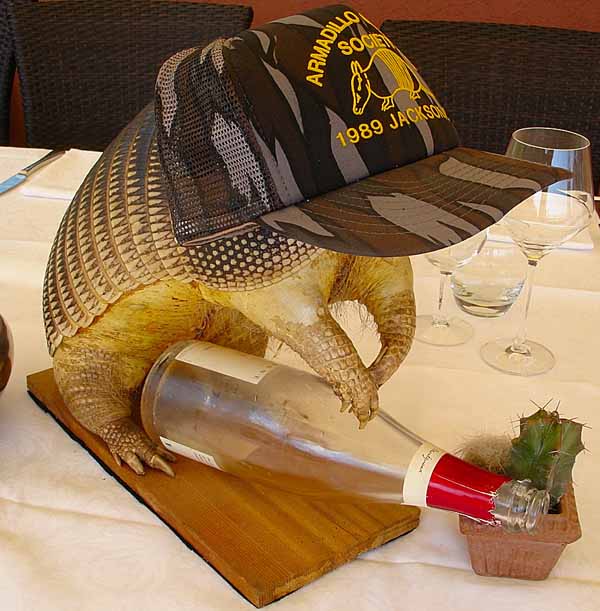 Confermata anche la scarsa propensione alla disciplina alimentare che , in mancanza di fornicazione pro-ricambio della specie, potrebbe almeno contribuire ad una più lunga permanenza sopra alla terra piuttosto che sotto. L’armadillo-pigrus, di scavare non ne vuole più sapere, ma quale Fandango, mezza giornata a seppellire perle di Borgogna sul colle adiacente in vista di un goliardico pomeriggio defaticante e cala panza, tempo perso, gli armadilli fanno orecchie da mercante, anzi, orecchie da chitarra, fingendosi interessati ad assoli chitarristici e performance promiscue piuttosto che riammettere in programma l’istinto primario di scavatori.